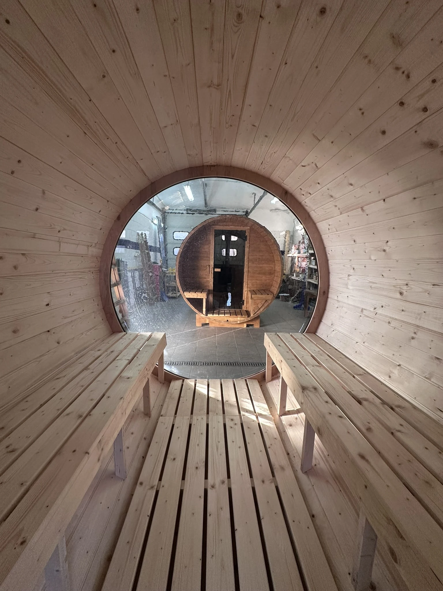 Die SpaDucha LUX Anhänger-Fasssauna verbindet finnische Saunatradition mit moderner Mobilität. Gefertigt aus hochwertiger sibirischer Fichte auf einem fahrbereiten Anhänger ermöglicht sie entspanntes Saunieren unter freiem Himmel – im Eigenheim-Garten, am Seeufer oder als mobile SPA-Lösung.