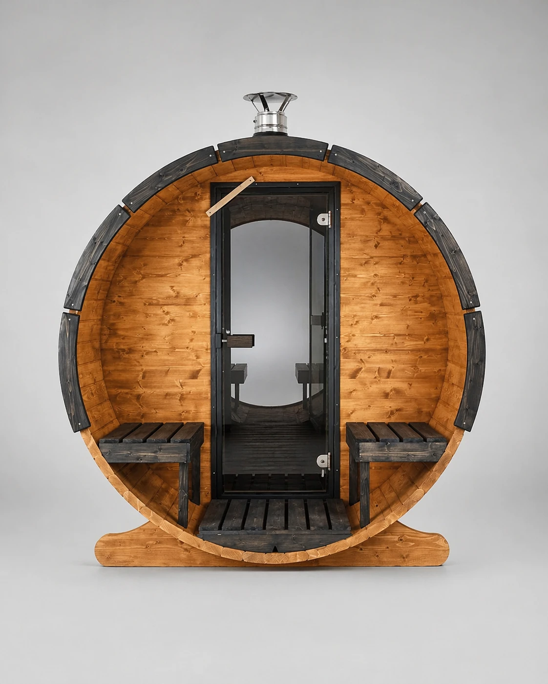 Fasssauna 250 cm mit Holzofen – Premium Gartensauna für 4–6 Personen