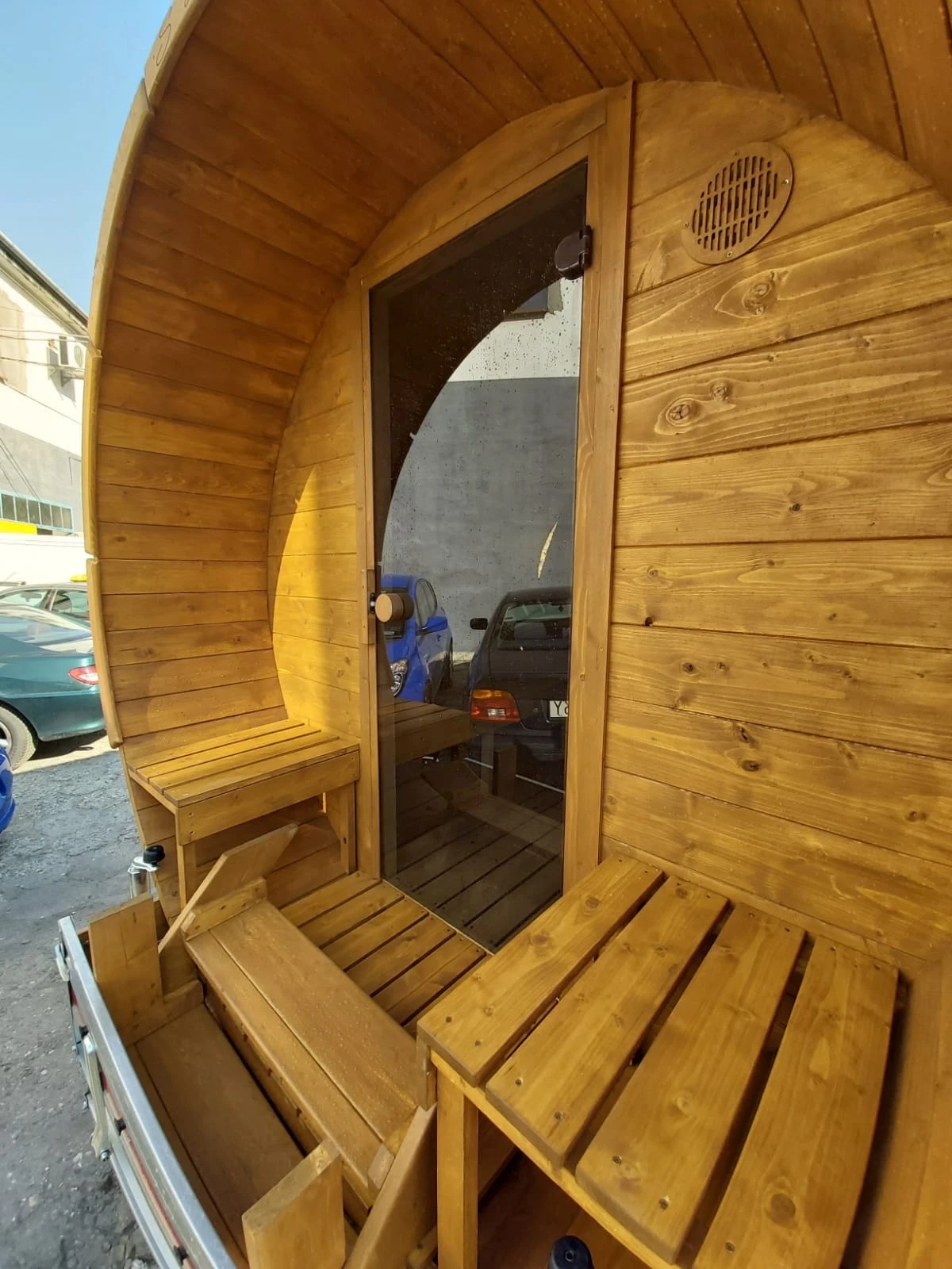 - Mobile Fasssauna 250 cm mit Anhänger – sofort einsatzbereit