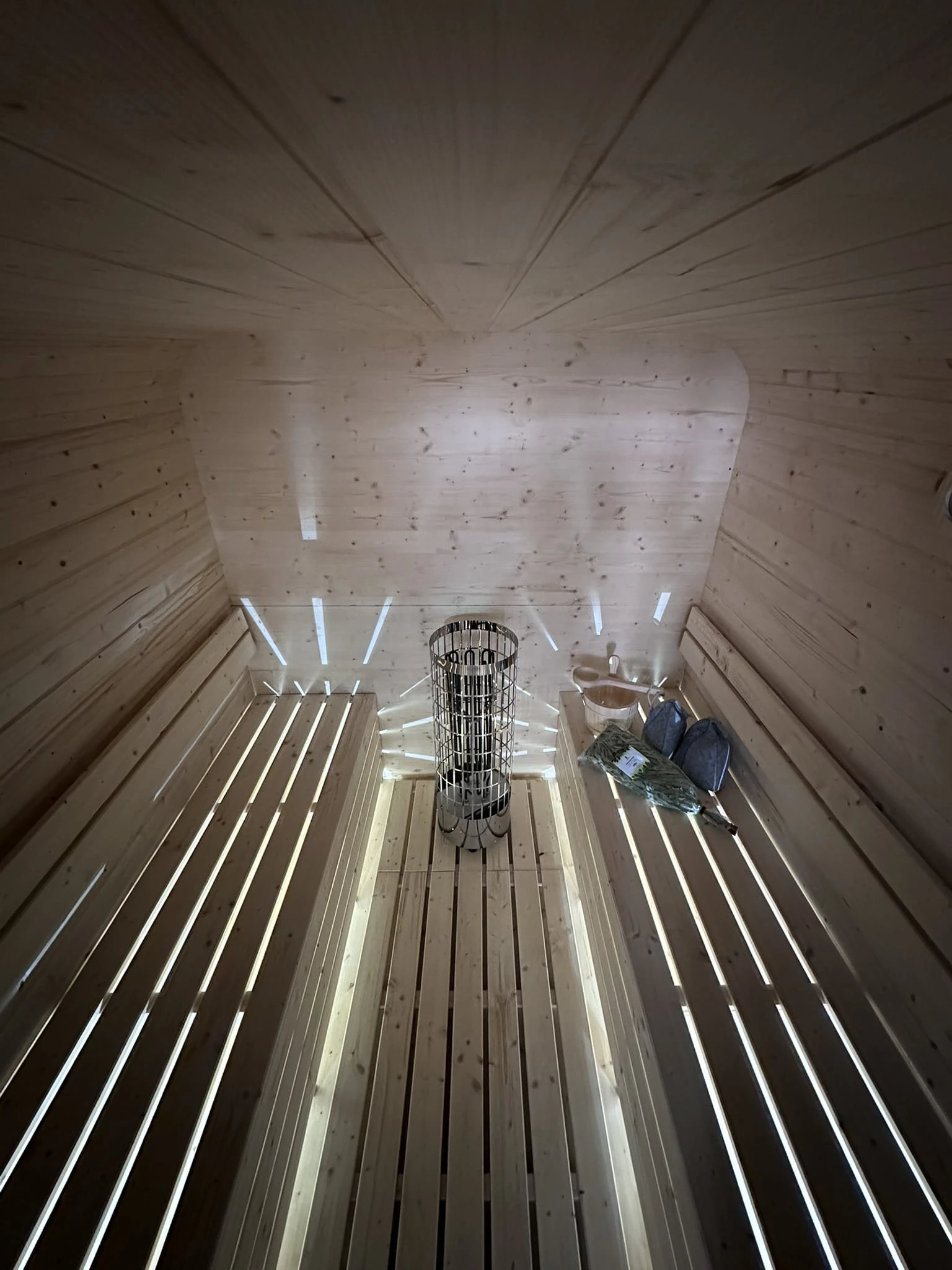Die Grundausstattung ist für alle Varianten identisch. Wenn der Kunde einen anderen Ofen wünscht (Holzofen mit Außenbefeuerung oder Harvia Cylindro 9/11 kW), kann dies im Notizfeld der Bestellung angegeben werden. Wir erstellen dann ein individuelles Angebot.