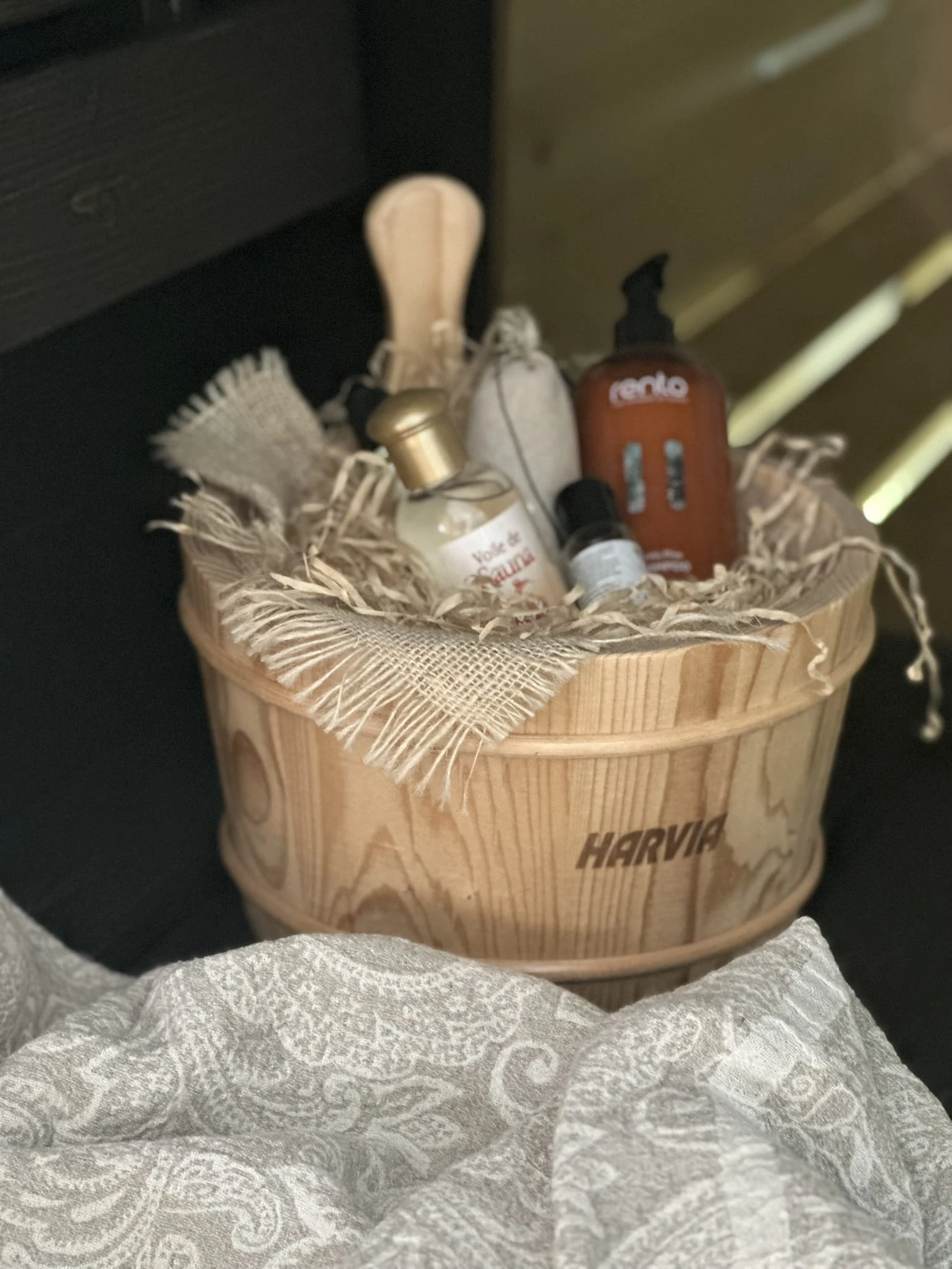 - Komplettes SpaDucha Zubehörset: Saunasteine, Holzkübel, Schöpfkelle, Thermometer, Hygrometer, Sanduhr
