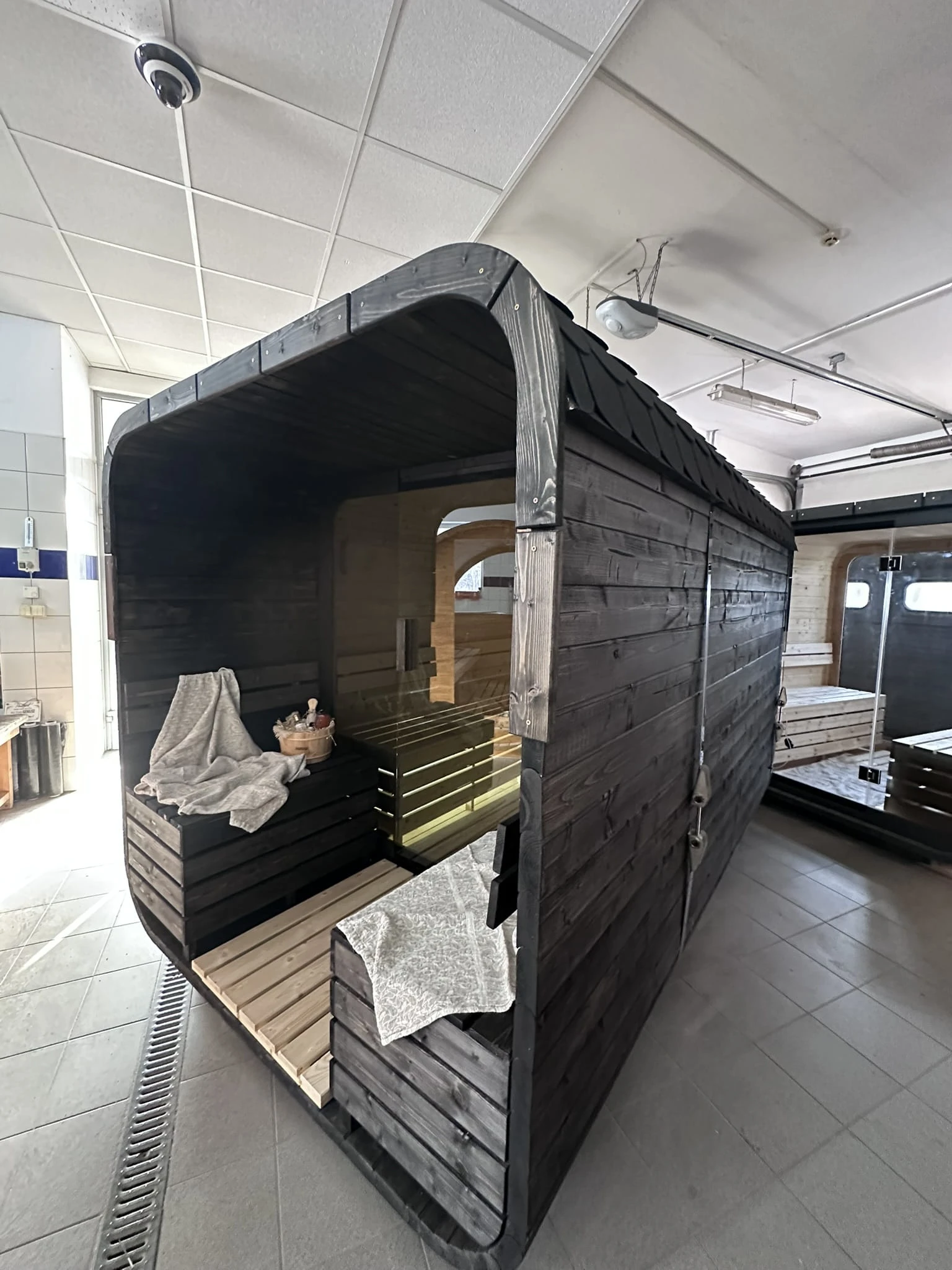 - Innenraum lackiert (saunageeignet), Bänke professionell geölt