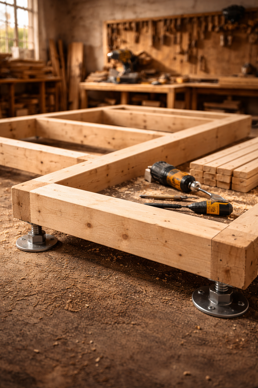 Gebogene Unterkonstruktion für Fasssauna aus Holz – stabile Basis für Saunaboden und Terrassenboden.png Holz Unterkonstruktion für Sauna Boden – gebogene Form passend für Fasssauna Konstruktion.png
