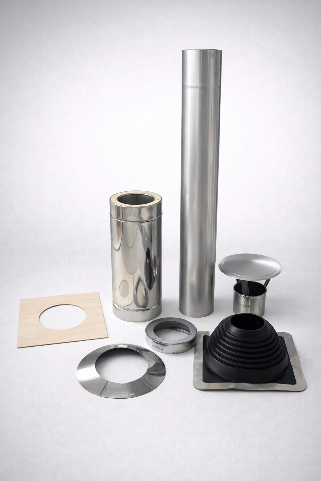 Das Set enthält die wichtigsten Elemente für eine sichere und saubere Abgasführung.