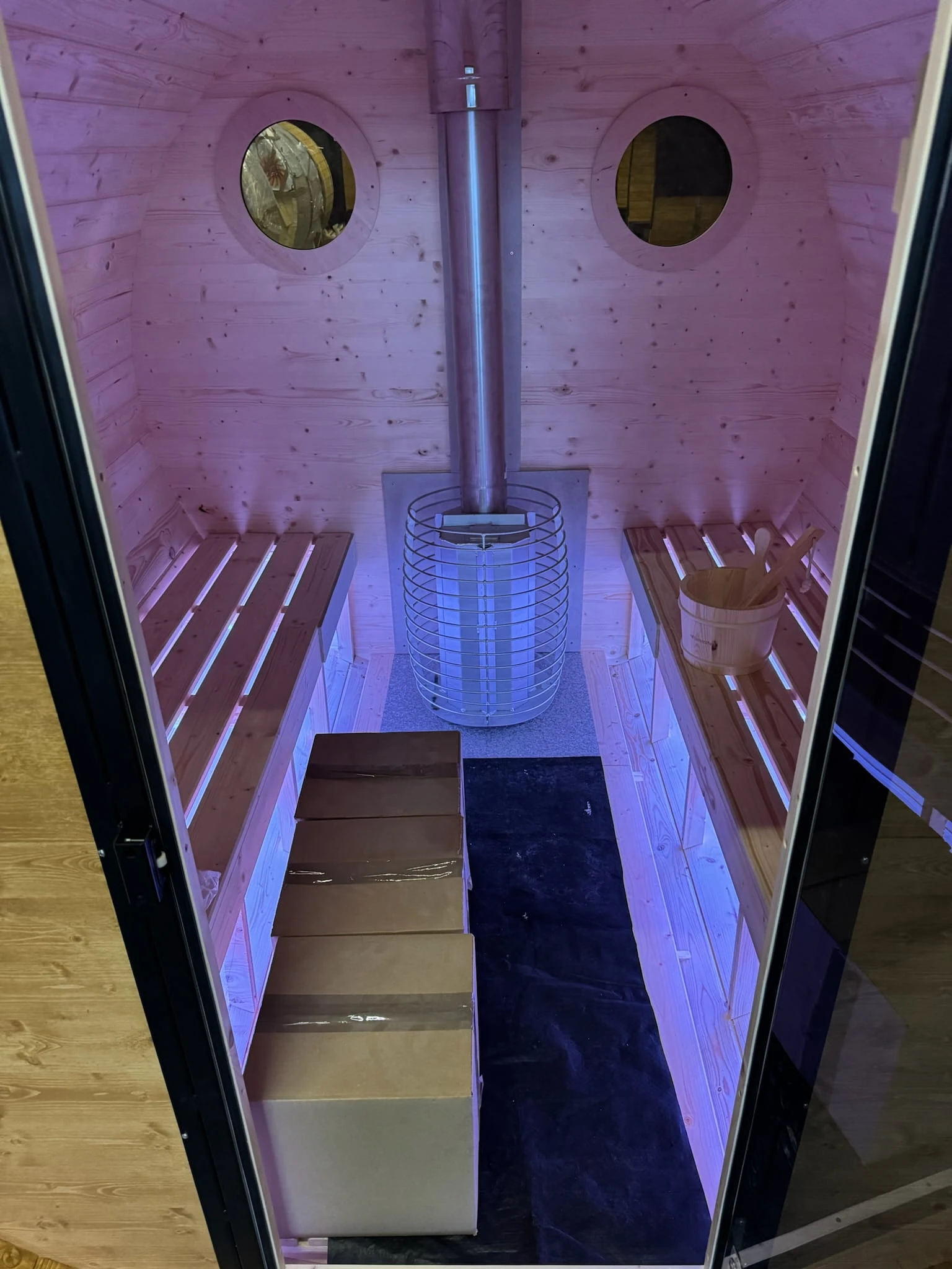 - Holzofen für authentische Saunaerlebnisse + Innenbeleuchtung LED 12 V